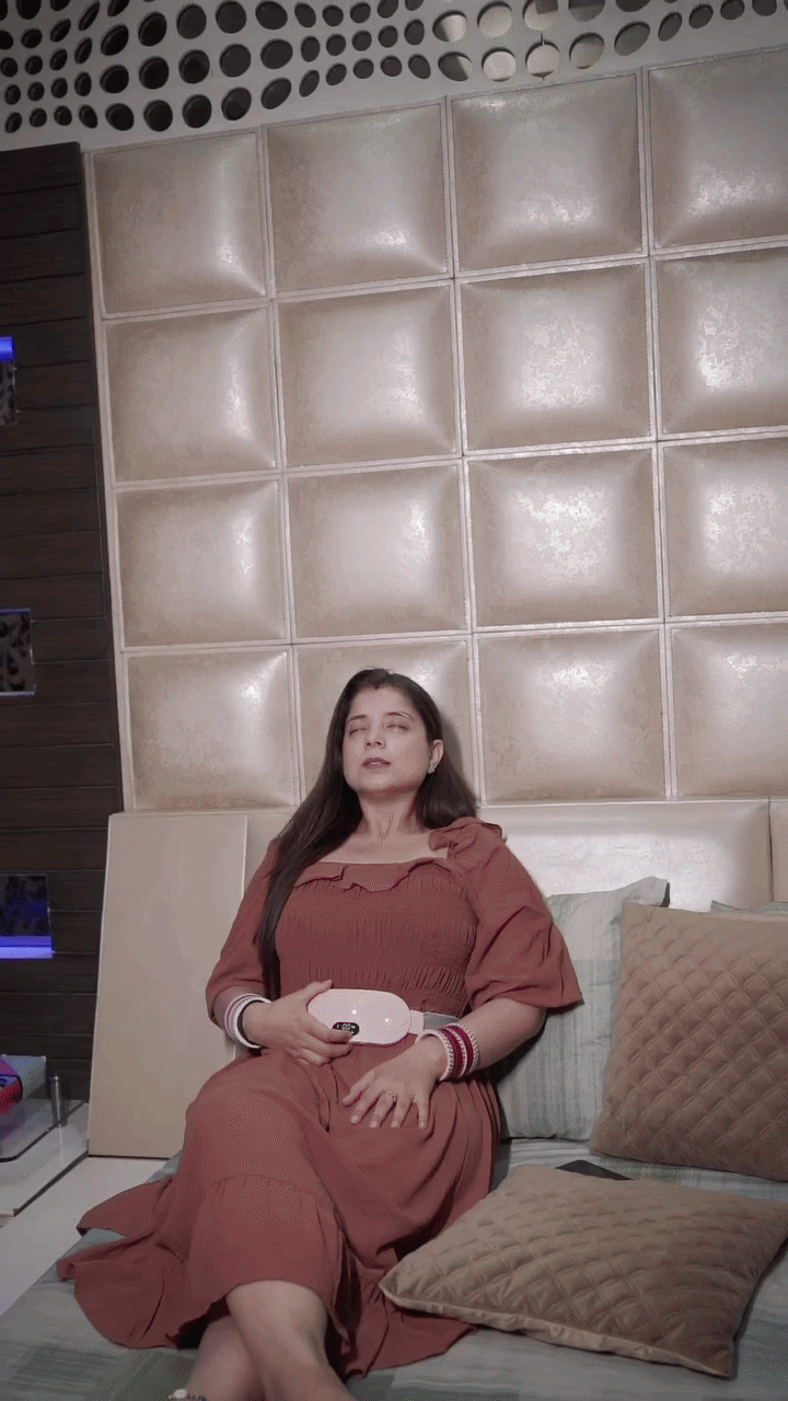 Combines gentle heat + vibration therapy to relax muscles and reduce cramps naturally.
